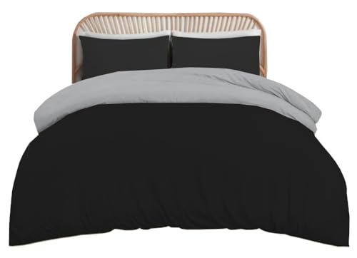 funky gadgets Single Duvet Cover Set – Soft Brushed Microfiber Plain Dyed Duvet Cover Sets with Pillow Case- Reversible Bedding Quilt Cover Set (Black & Grey)