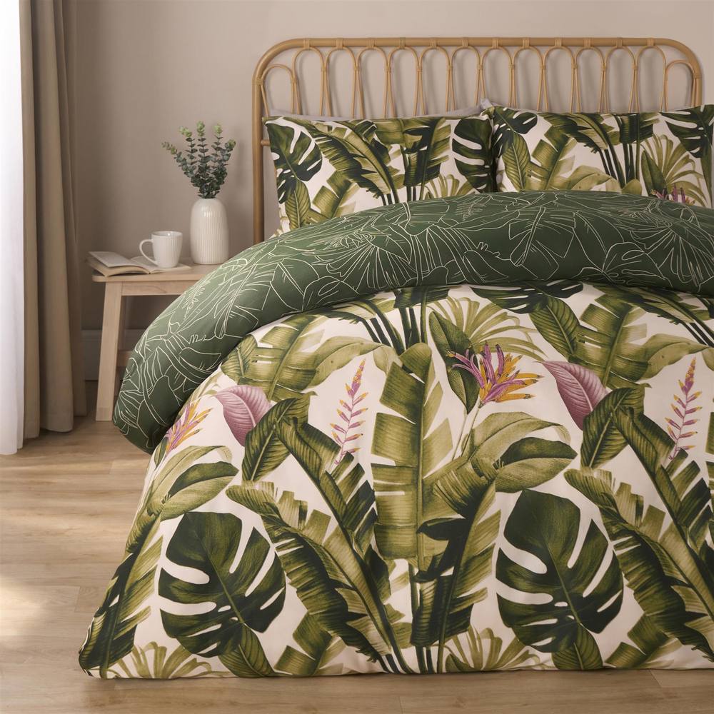 OHS Tropical Leaf Duvet Cover Reversible Bedding Set in Dark Green | Size: Double