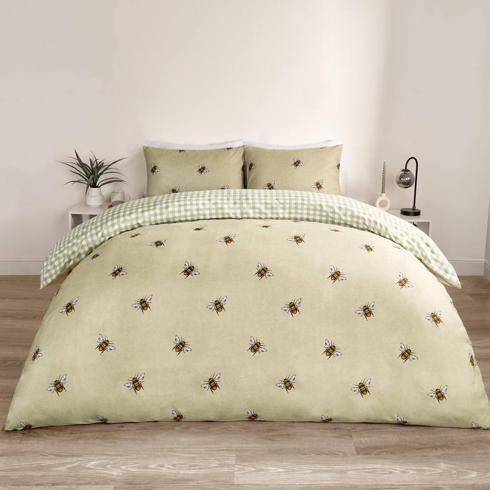 OHS Bee Striped Duvet Cover Reversible Bedding Set in Light Green | Size: Double