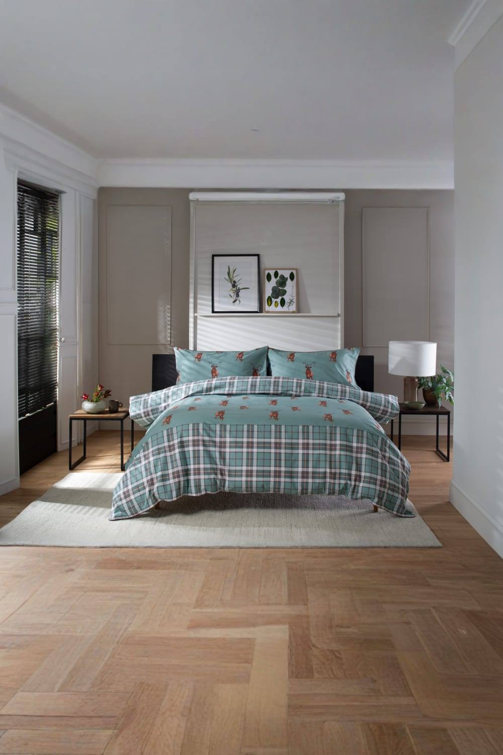 The Lyndon Company Highland Fell 100% Cotton Duvet Cover Set – Stag Print Bedding in Green | Size: Double