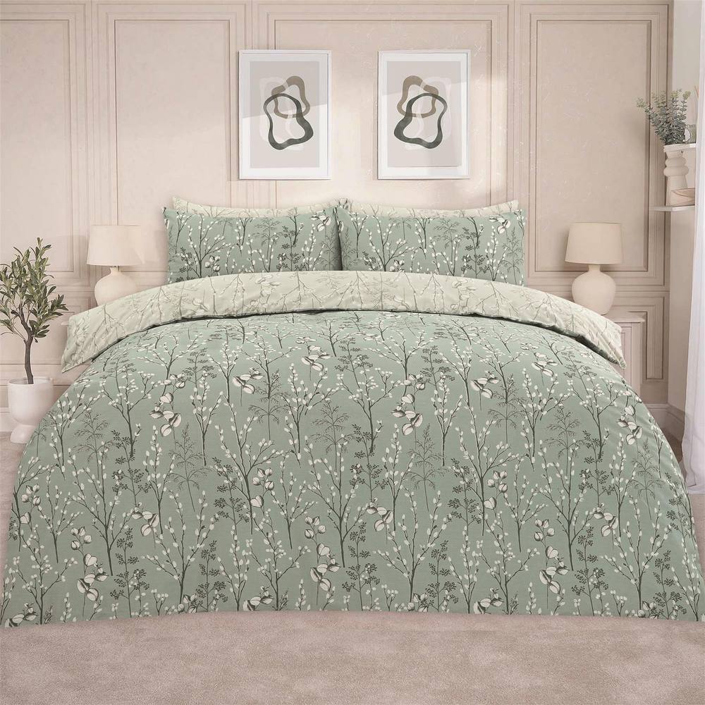 OHS Duvet Cover Set Willow Quilt Reversible Bedding in Pale Green | Size: Super King