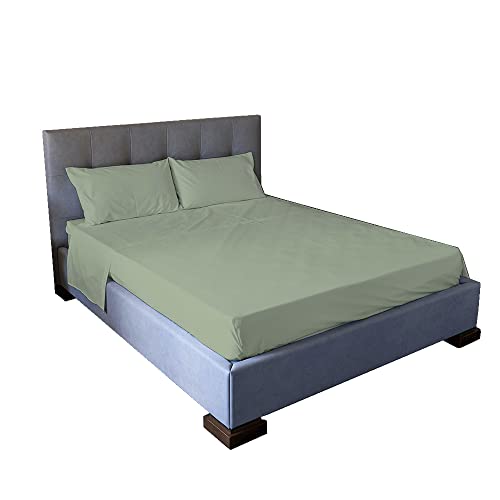 Jenny Sesal Bed Sheet Set – Solid Colour – Made in Italy Double Bedding Set – Sage Green – Sheet Set + Pillowcases