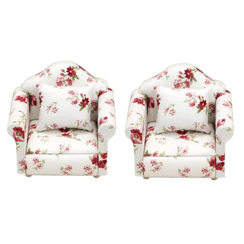 Gxsterd 1/12 Dollhouse Armchair Sofa with Pillow 2PCS Miniature Chair Dollhouse Couch for Dollhouse Living Room or Dollhouse Bedroom Furniture Accessories (Flower)