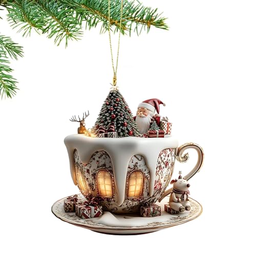 Christmas Tree Set: Acrylic Coffee Cup Pendant, Holiday Snow House Decoration | Bedroom Work Bookshelf Car Interior, Display Accessory