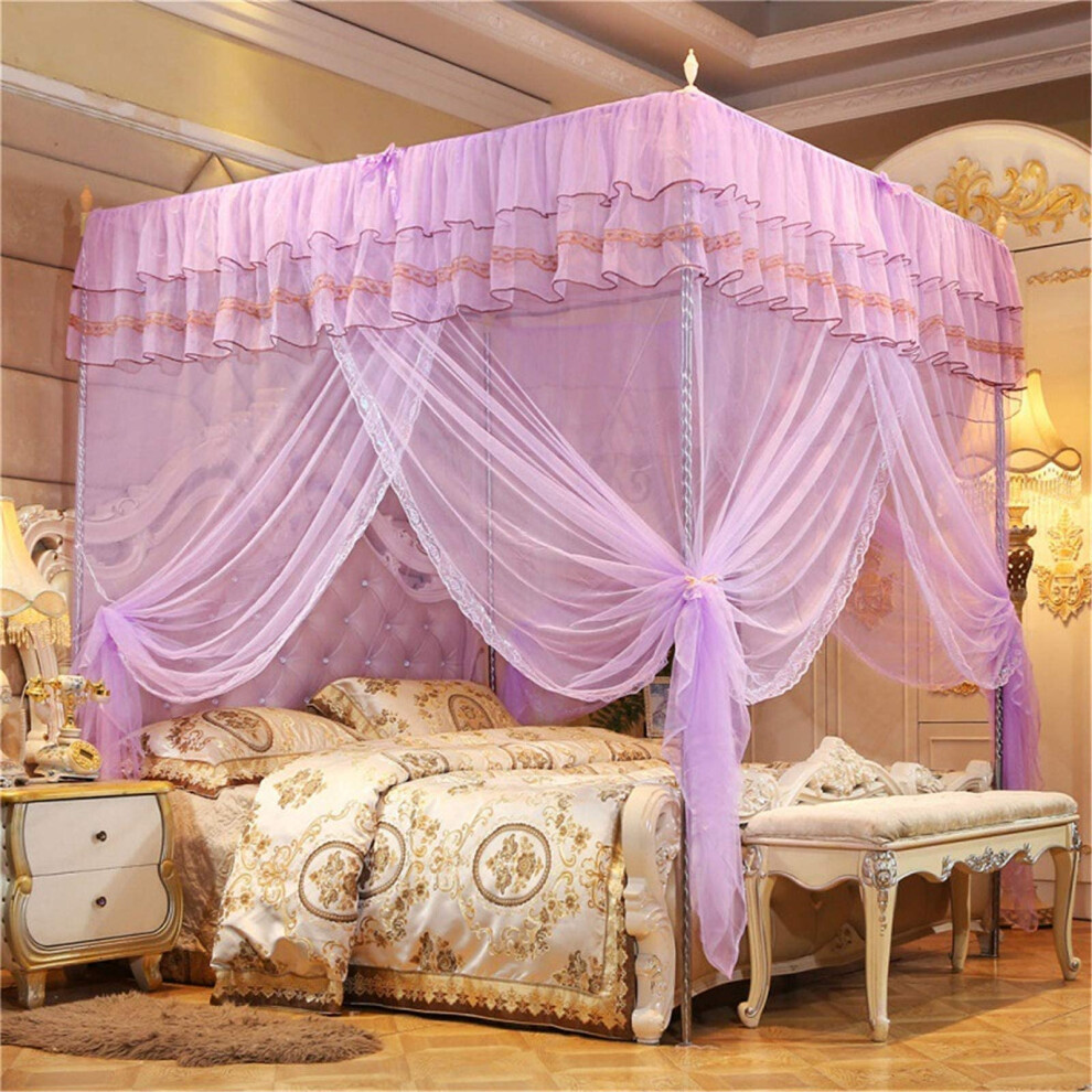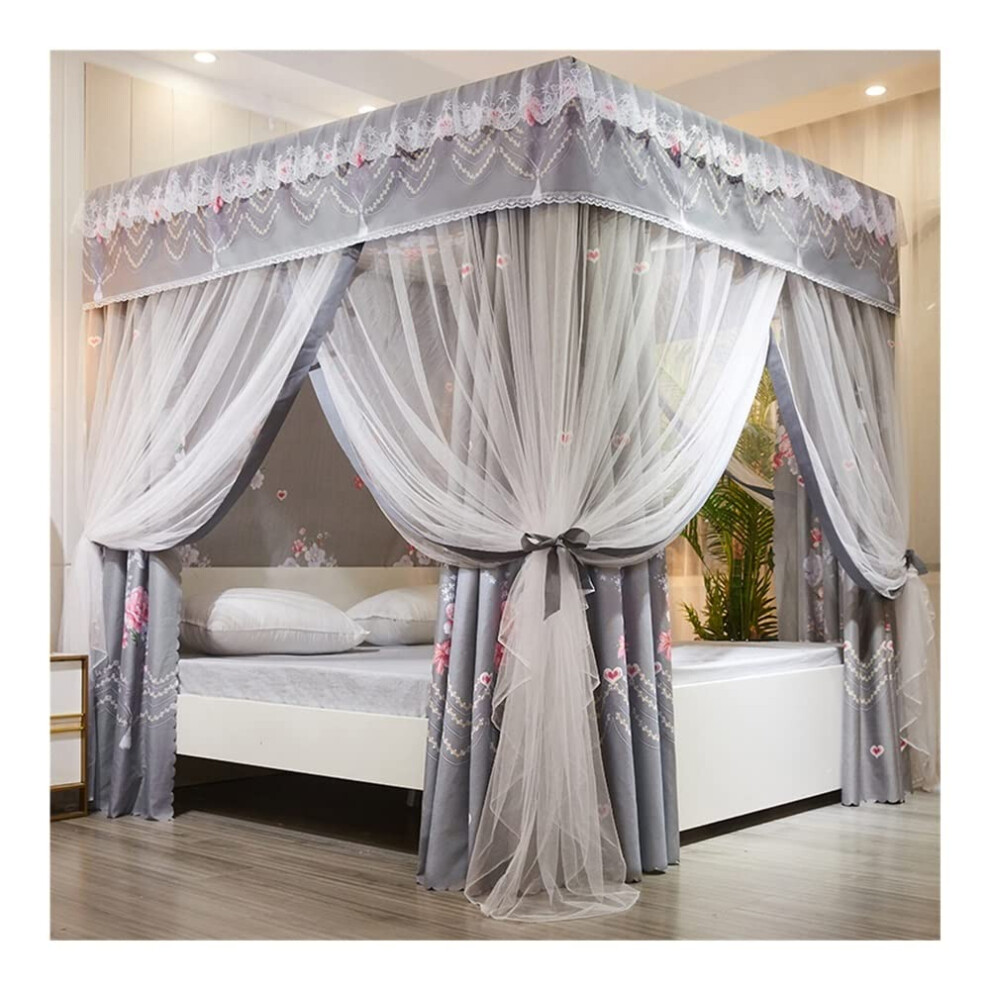 Bed Canopy Bedroom Mosquito Net, Luxury Princess Style, 4-Pole Fabric, 2m x 2m, High-Quality Tulle Curtain