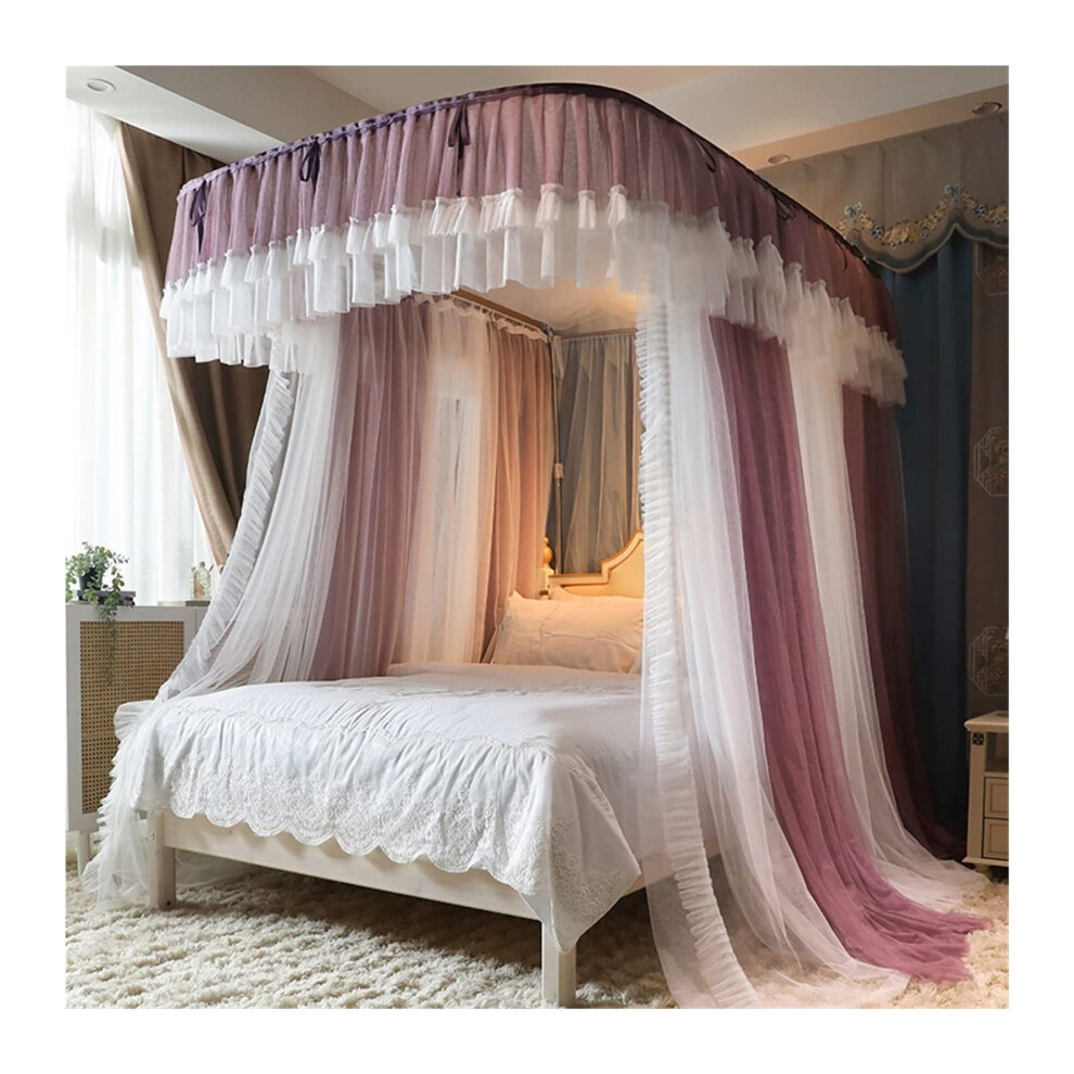 Bed Canopy With Dustproof Mosquito Net, Luxury Bedroom Canopy, Double Rod Bracket, Easy Installation, Multicolor