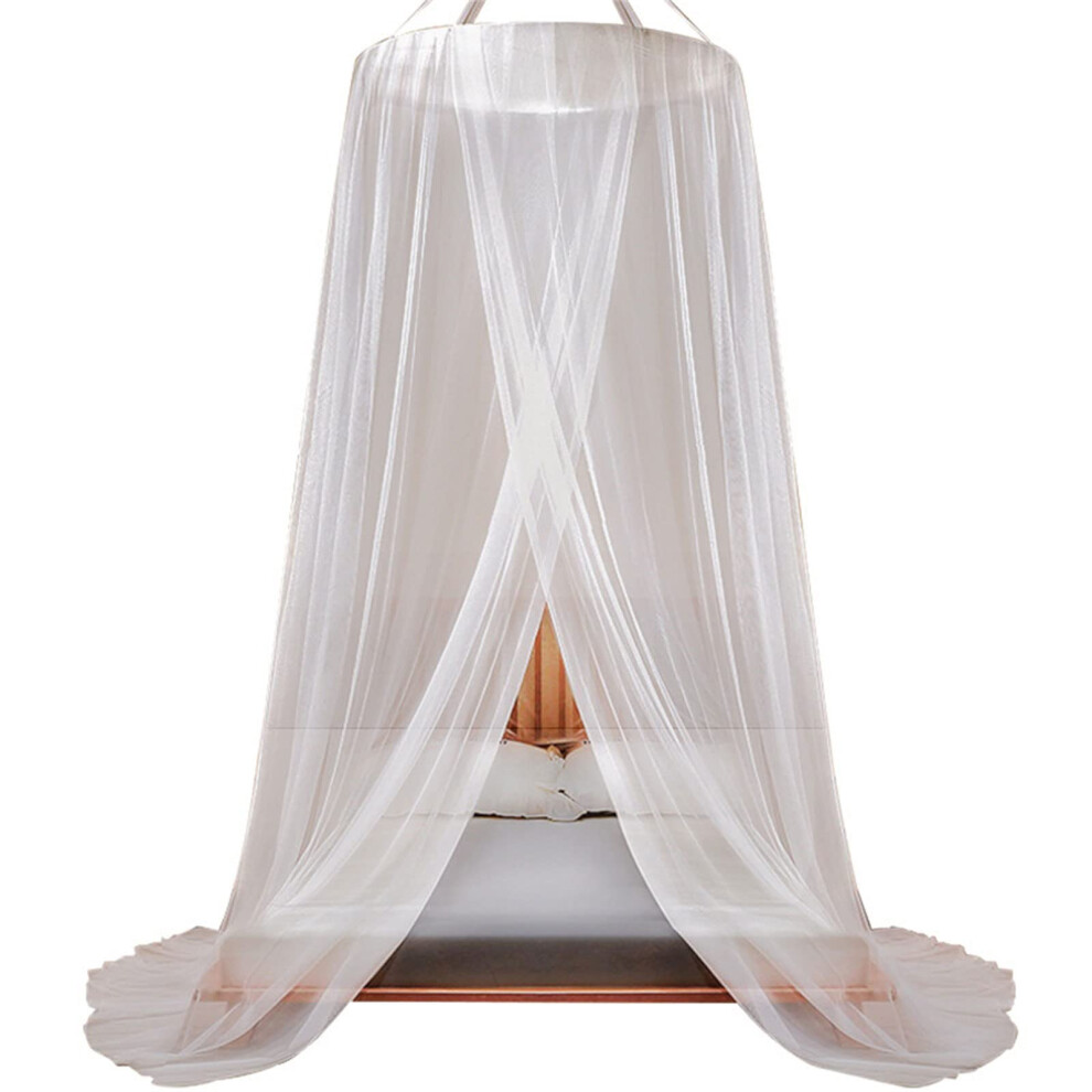 Canopy bed frame curtain, mosquito net, bed canopy tent, round, domeshaped, bed curtains, hanging princess canopy, bedroom decoration (Color: White)