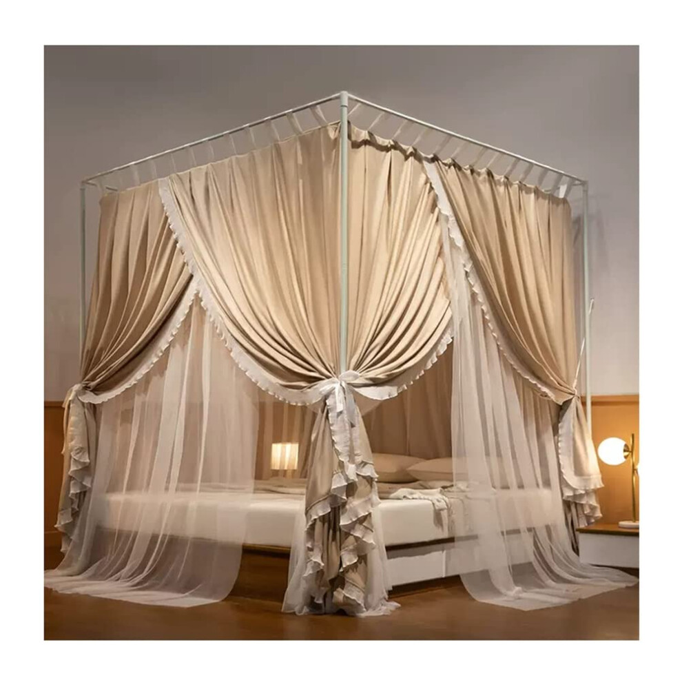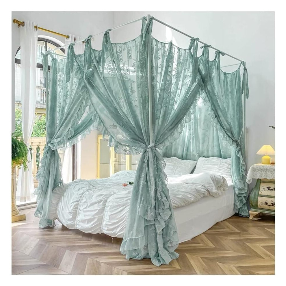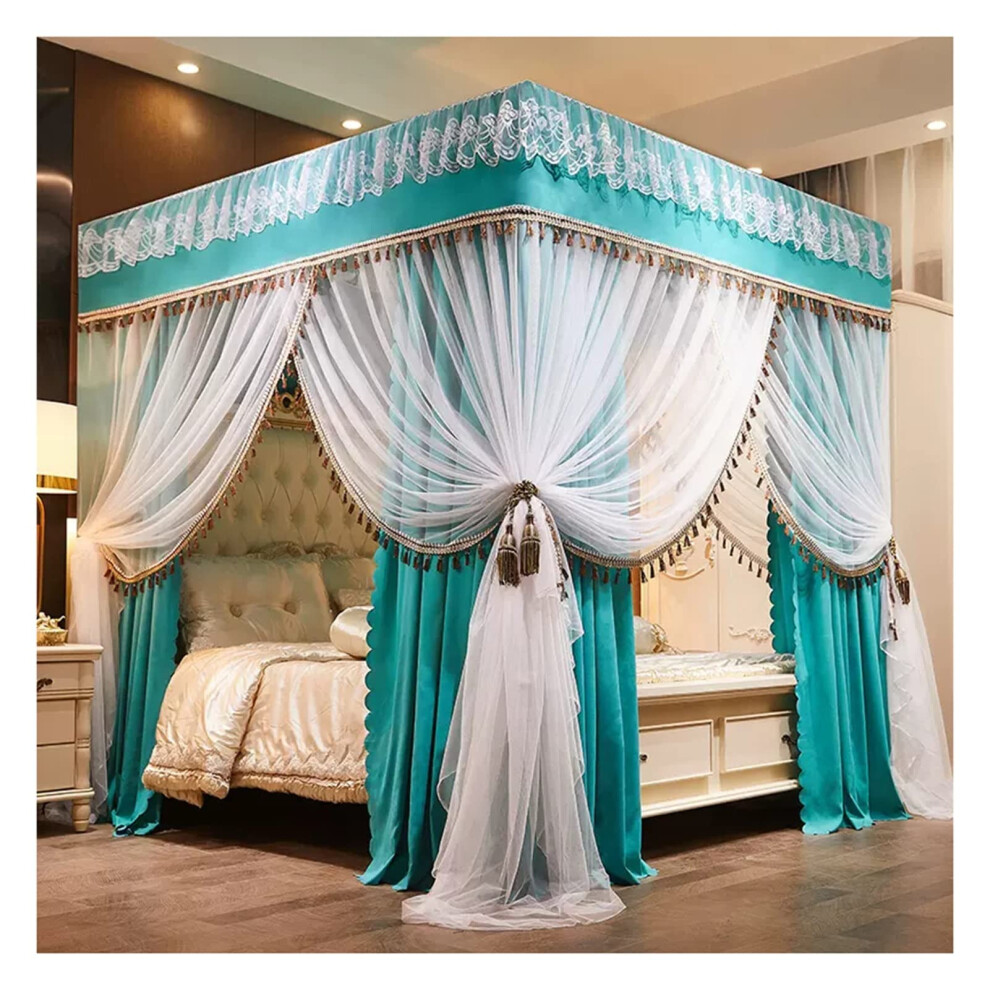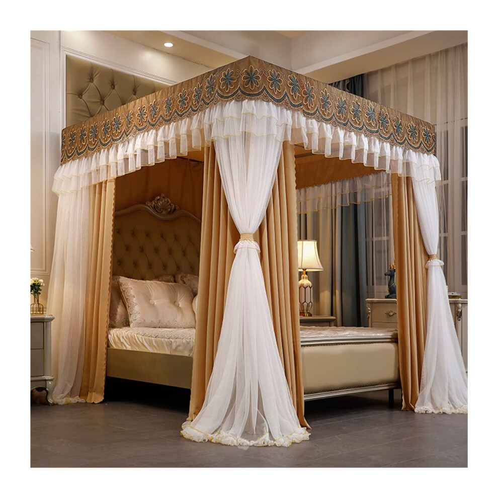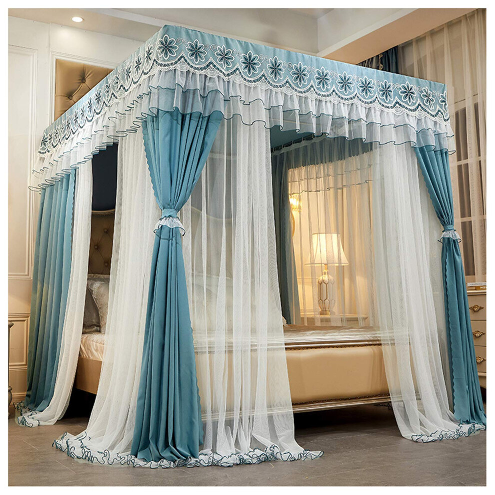 Fourcorner canopy curtains for bedroom, princess bed canopy, double embroidery, lace (1.8 x 2 m)