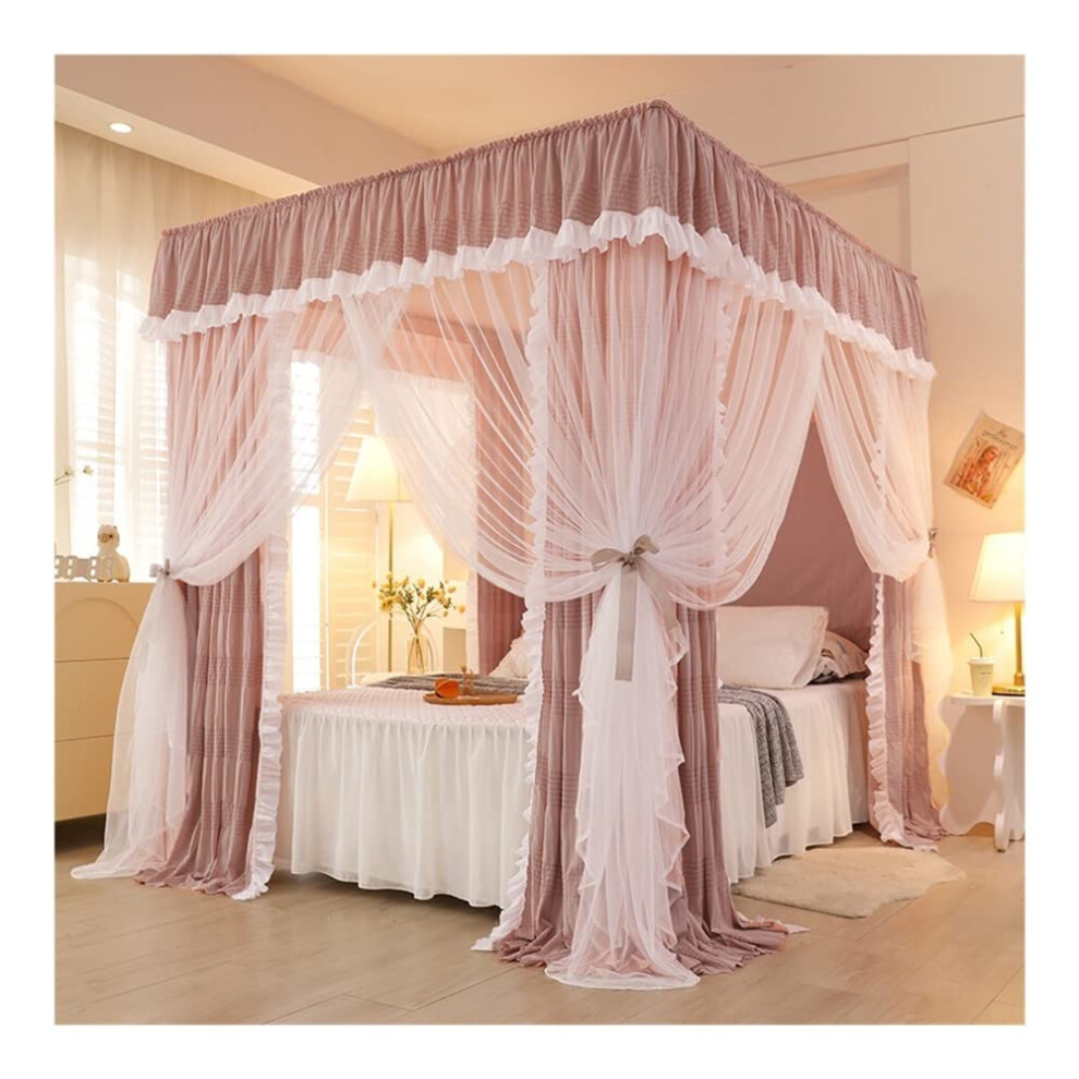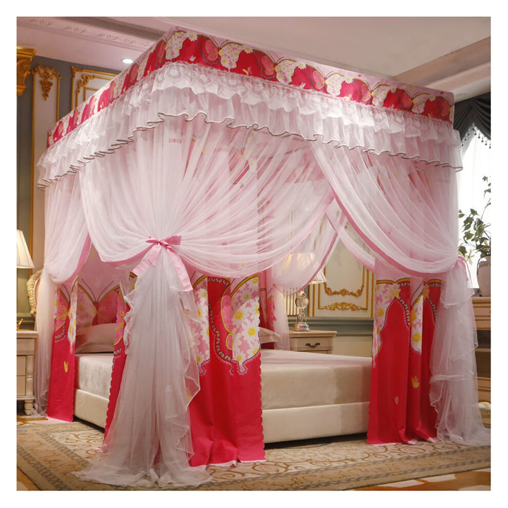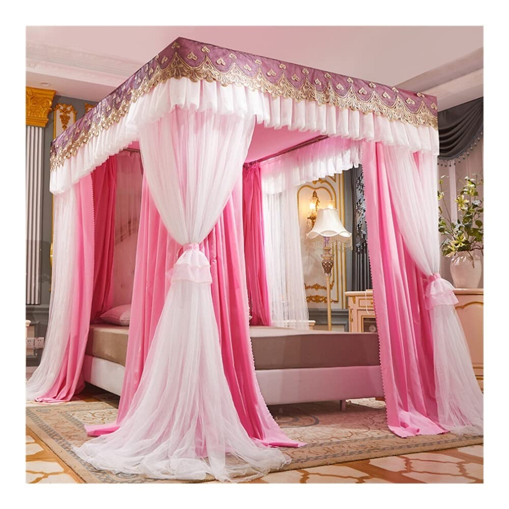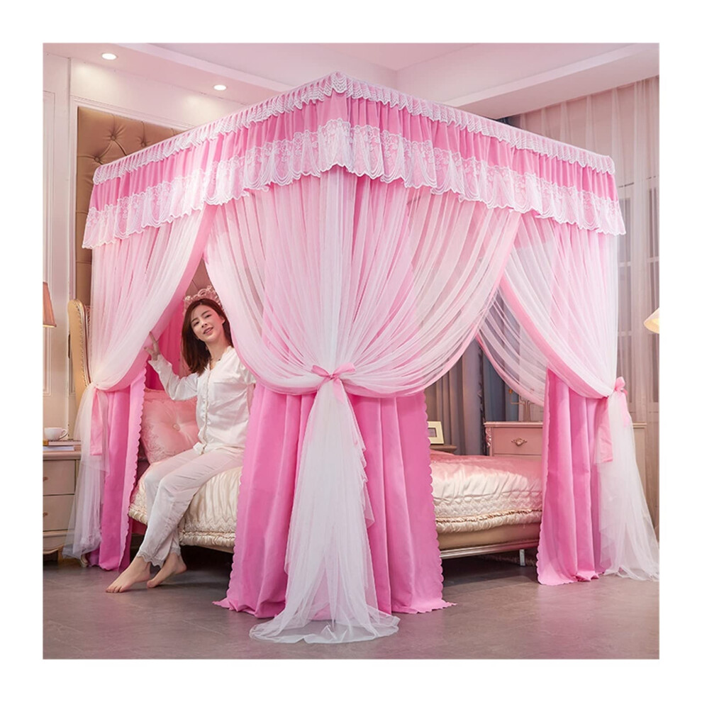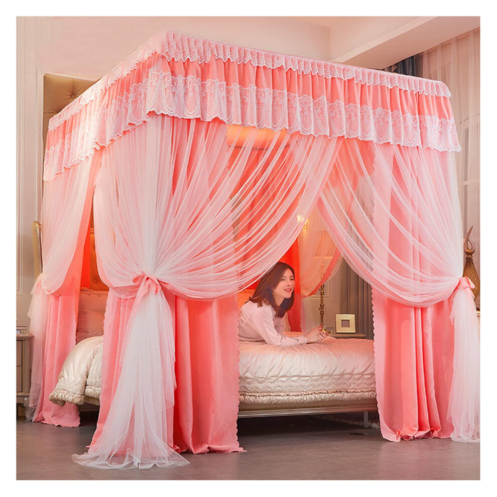 Bed Canopy Bedroom Bed Mosquito Net, Blackout & Dustproof 4 Corner Canopy, Princess Room Decorative Bed Curtain (Color : Pink, Size : 180x220x200cm)