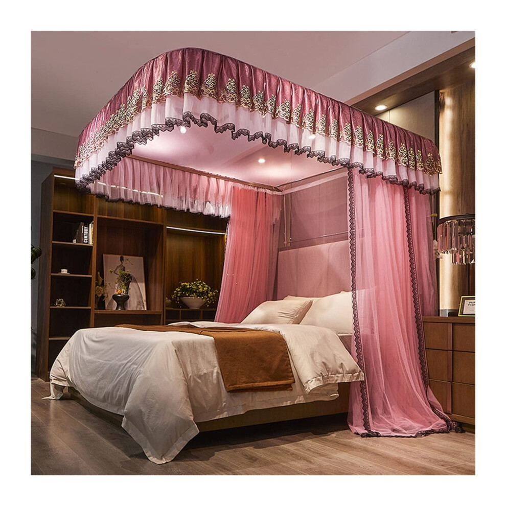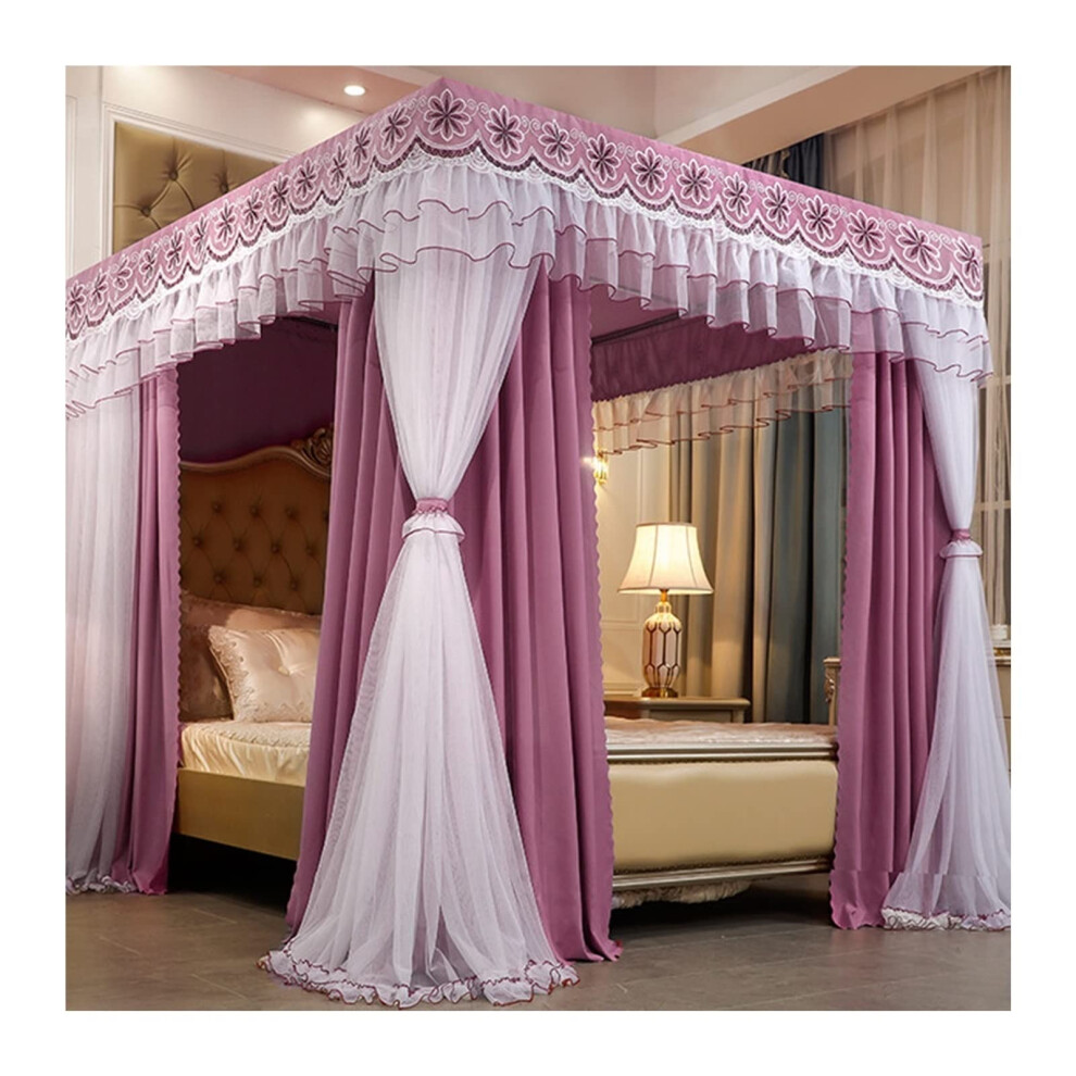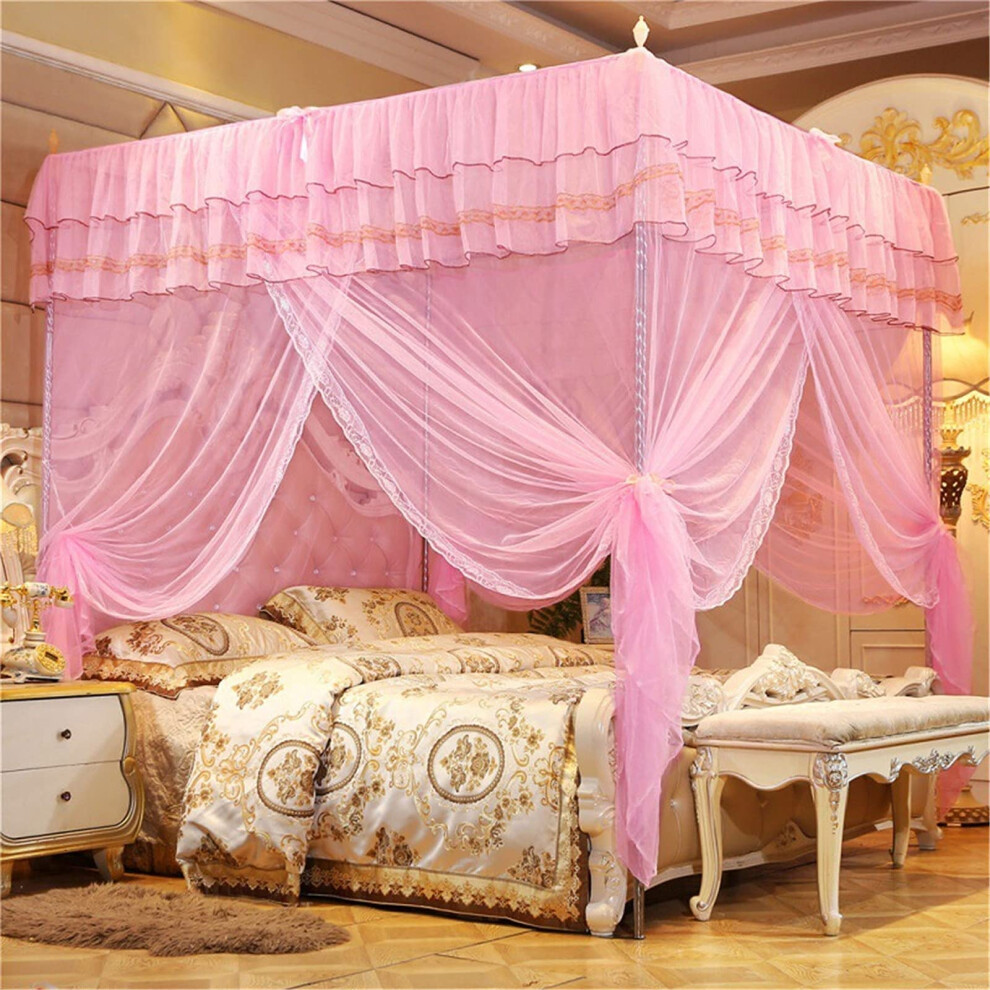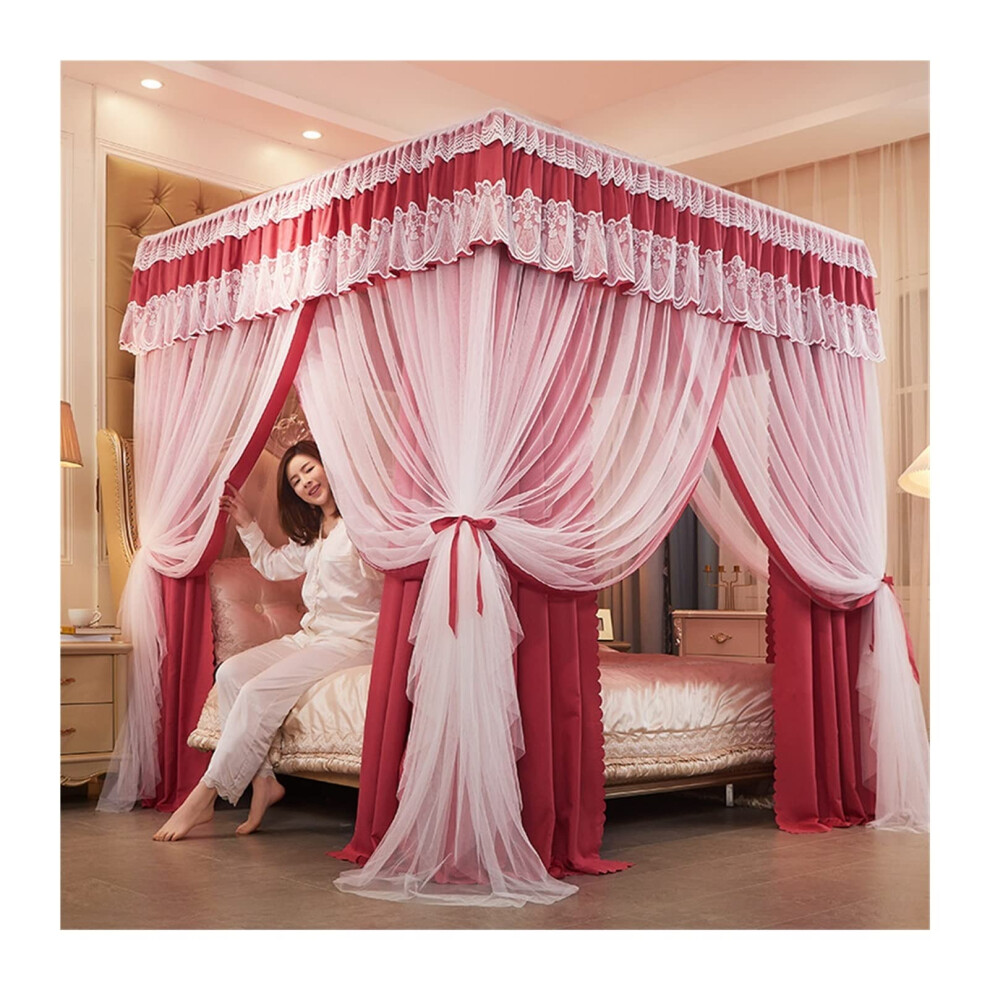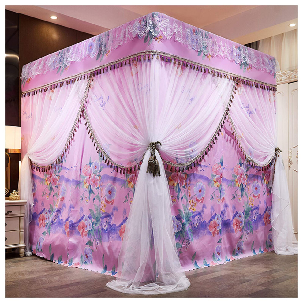 Bed Canopy Bedroom Bed Mosquito Net, Blackout & Dustproof 4 Corner Canopy, Princess Room Decorative Bed Curtain (Color : Pink, Size : 180x220x200cm)