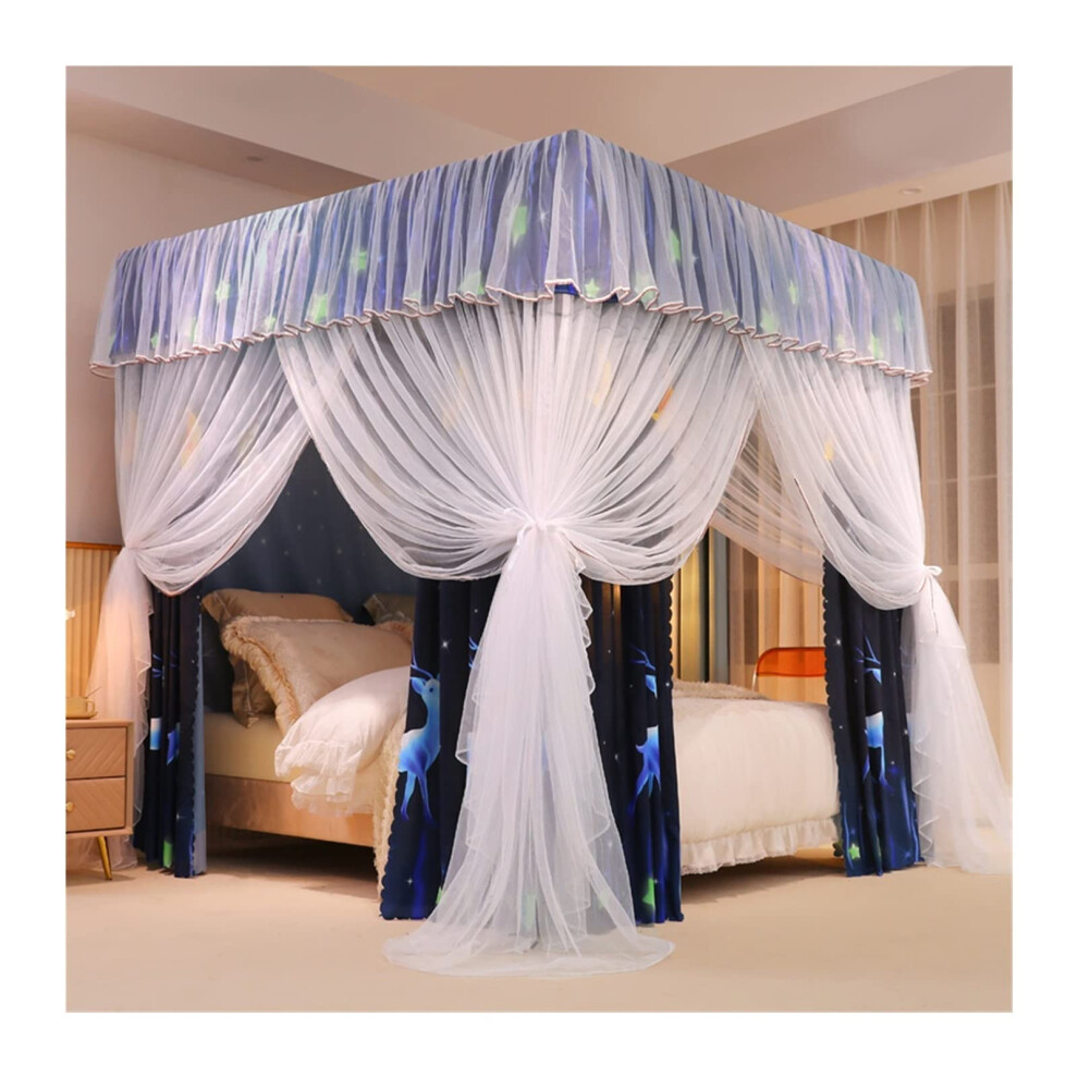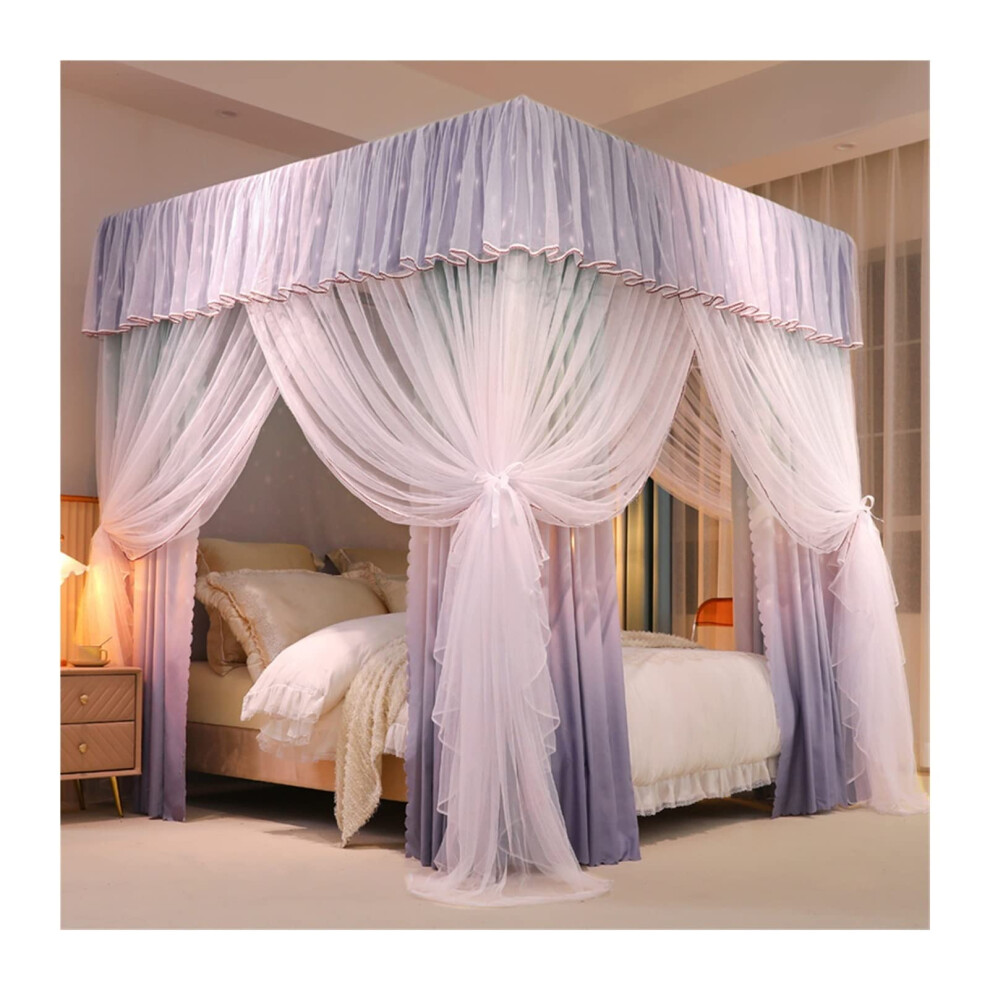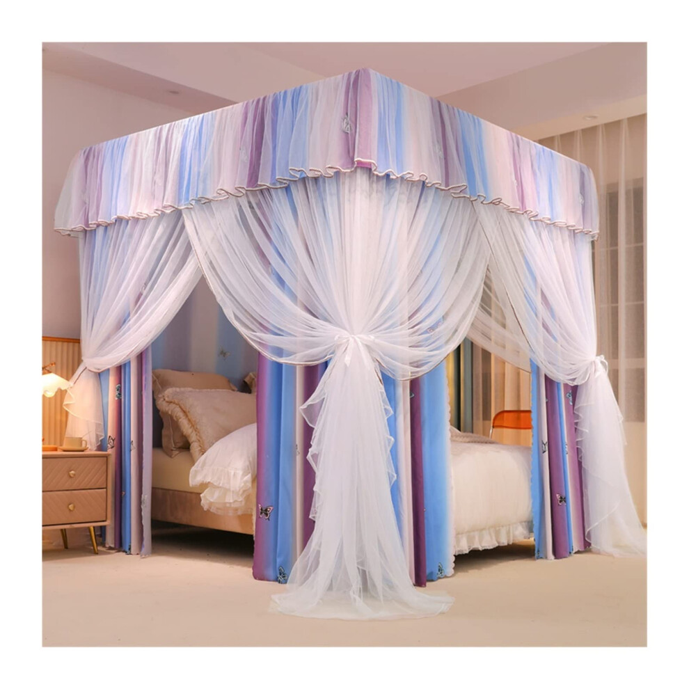 Canopy Bedroom Mosquito Net, Double Blackout Luxury Bed Canopy, FloorLength PrincessStyle Bed Curtain in MultiColored