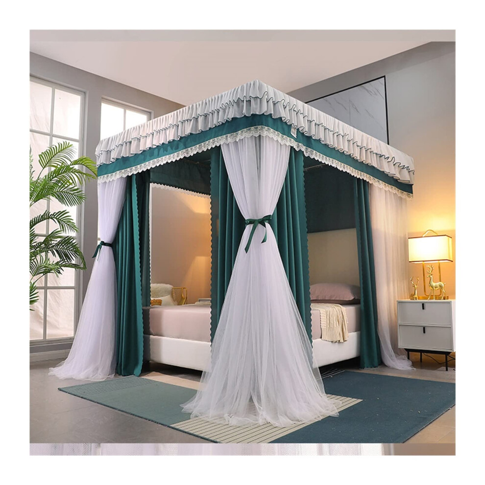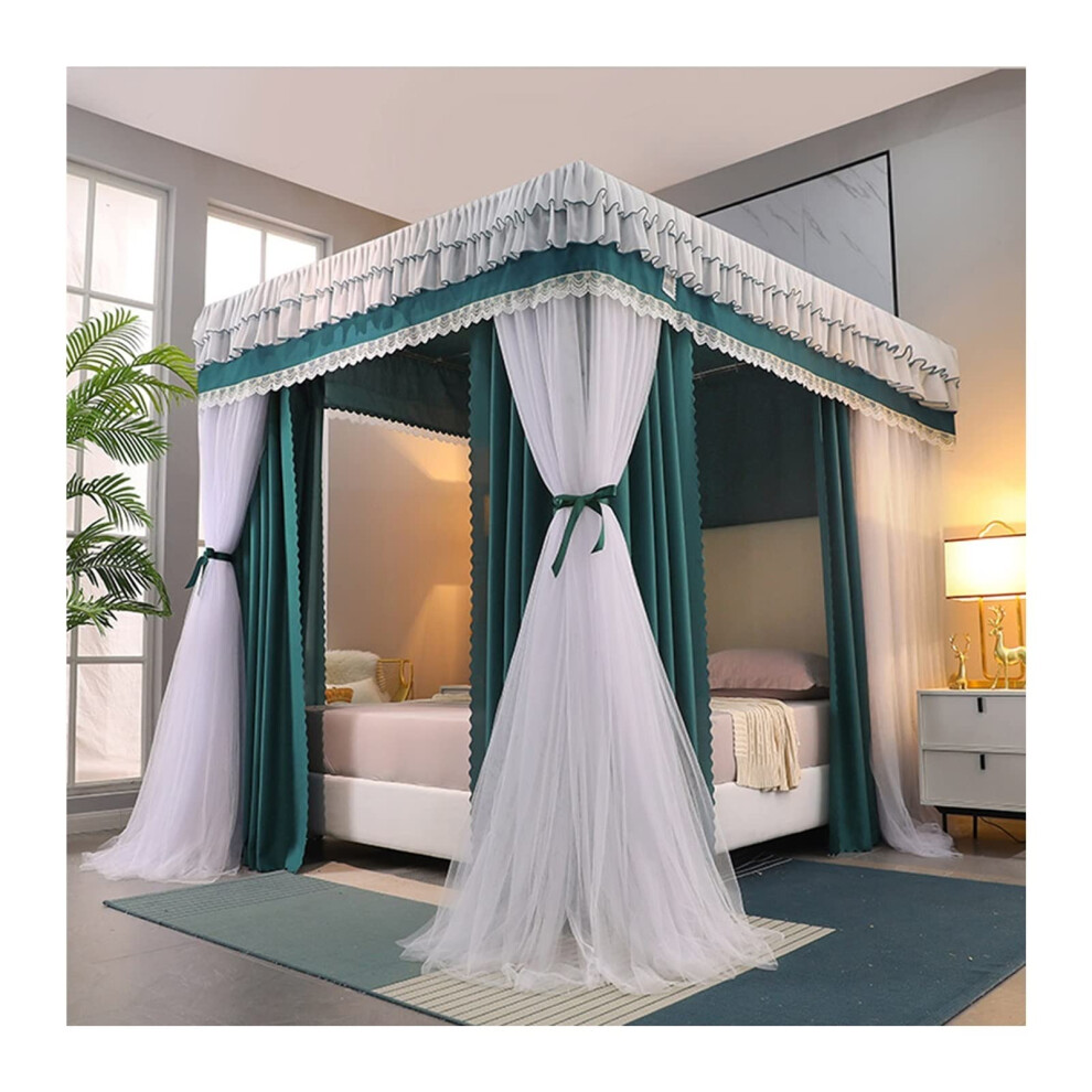 Bed Canopy Bedroom Mosquito Net, Green Blackout Curtain Floor to Ceiling, 150x200x200cm, Luxury Bedroom Decoration