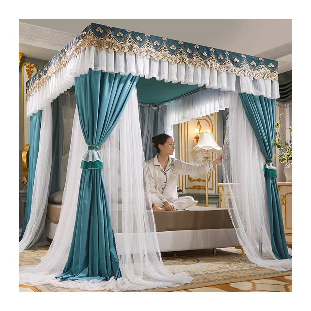 Mosquito Net For 1.8m/6ft Bed 4-Pole Luxury Bed Canopy, Bedroom Blackout Dust-Proof Curtain, Color Style 1, Size 1.8x2x2m