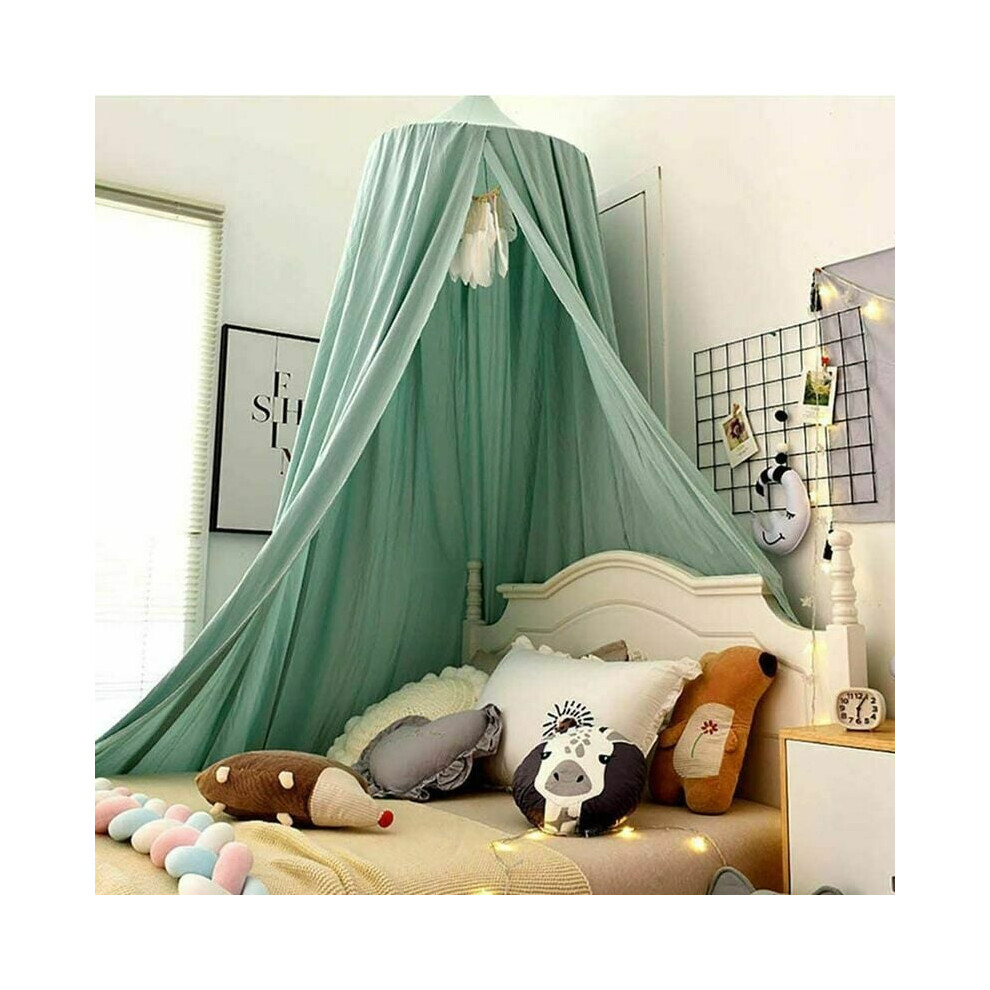 Surwin Bed Canopy for Children, Dark Green Kids Round Dome Bed Canopy Mosquito Net Protection Canopy Bedroom Nursery Decoration Hanging Curtain Net Reading Corner Princess Play Tent for Baby Girls