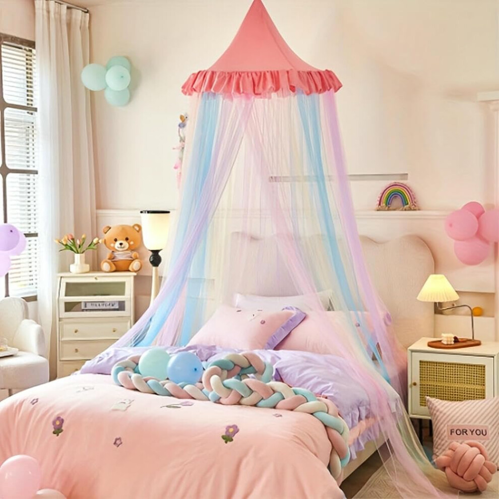 Rainbow Canopy Mosquito Net EasyInstall EasySetup Bedroom Canopy Dark Pink Fluffy Rainbow Netting