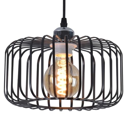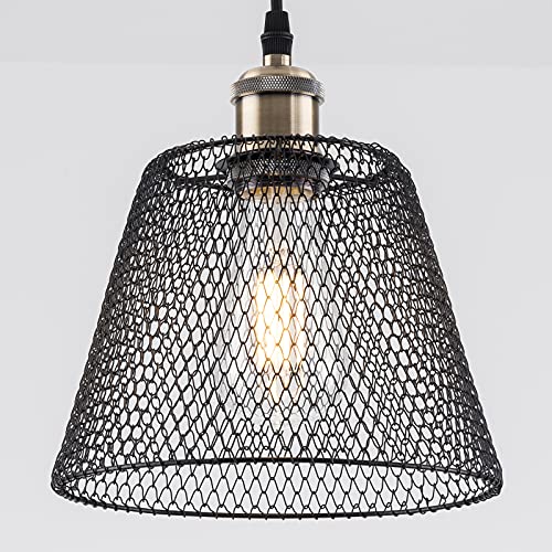 HARPER LIVING Pendant Ceiling Light Shade, Easy Fit Lampshades Black Metal Mesh, Lamp Shades, Reducing Ring Included, Vintage Ceiling Basket Cage for Bedroom Ceiling Lights Pendant (Black)