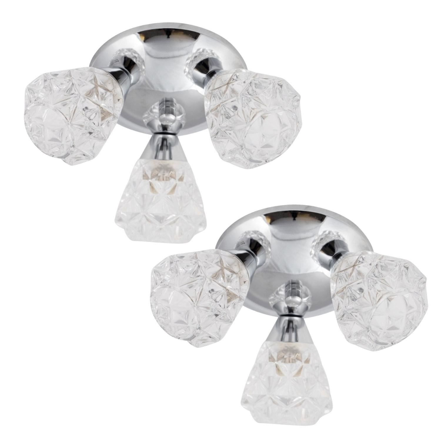 Pair of Modern Chrome 3 Flush Ceiling Light Fitting Glass Shades Bedroom Lounges