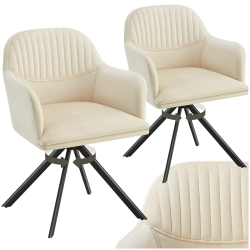 tectake® Set of 2 Velvet Dining Chairs with 360° Swivel Function, Thickly Padded Armchairs with Stable Steel Legs, Non-Slip Caps & Quick Assembly - Ideal Kitchen, Bedroom & Desk Chairs - Cream/Black
