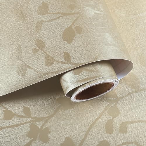 VaryPaper Peel and Stick Beige Patterned Wallpaper 40cmx200cm Leaf Contact Paper Sticky Back Plastic Lining Paper for Wall Stick on Wallpaper for Living Room Bedroom Cupboards Vinyl Wrap for Furniture
