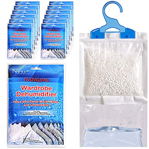 Nyxi Set of 12 Hanging Interior Wardrobe Dehumidifier - 230g Each Bag - Ideal to stop damp, mould mildew & condensation- For Wardrobe, Home, Kitchen, Garage, Bedroom, Caravan, Office, Basement etc