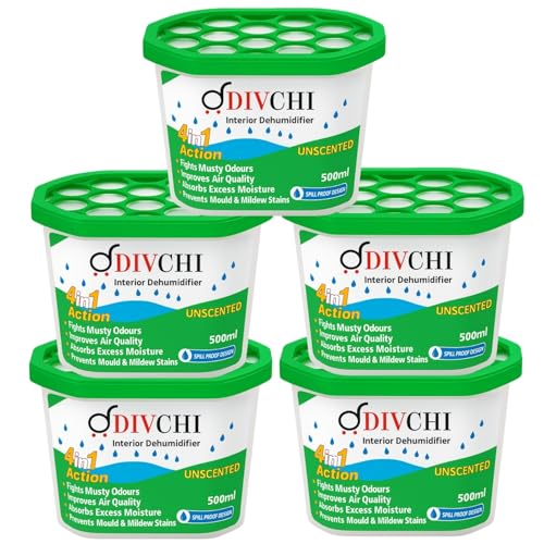 DIVCHI Dehumidifier 500ml Pack of 5 | Condensation Remover Moisture Absorber, Dehumidifiers for Damp, Mould, Moisture in Home, Kitchen, Wardrobe, Bedroom, Caravan, Office, Garage, Basement