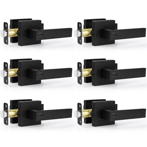 Estmoon 6 Pack Matte Black Door Handle, Keyless Interior Door Knobs Square Privacy Door Levers Heavy Duty Door Locks for Bedroom Bathroom, Reversible Interior Handles for Left & Right Handled Doors