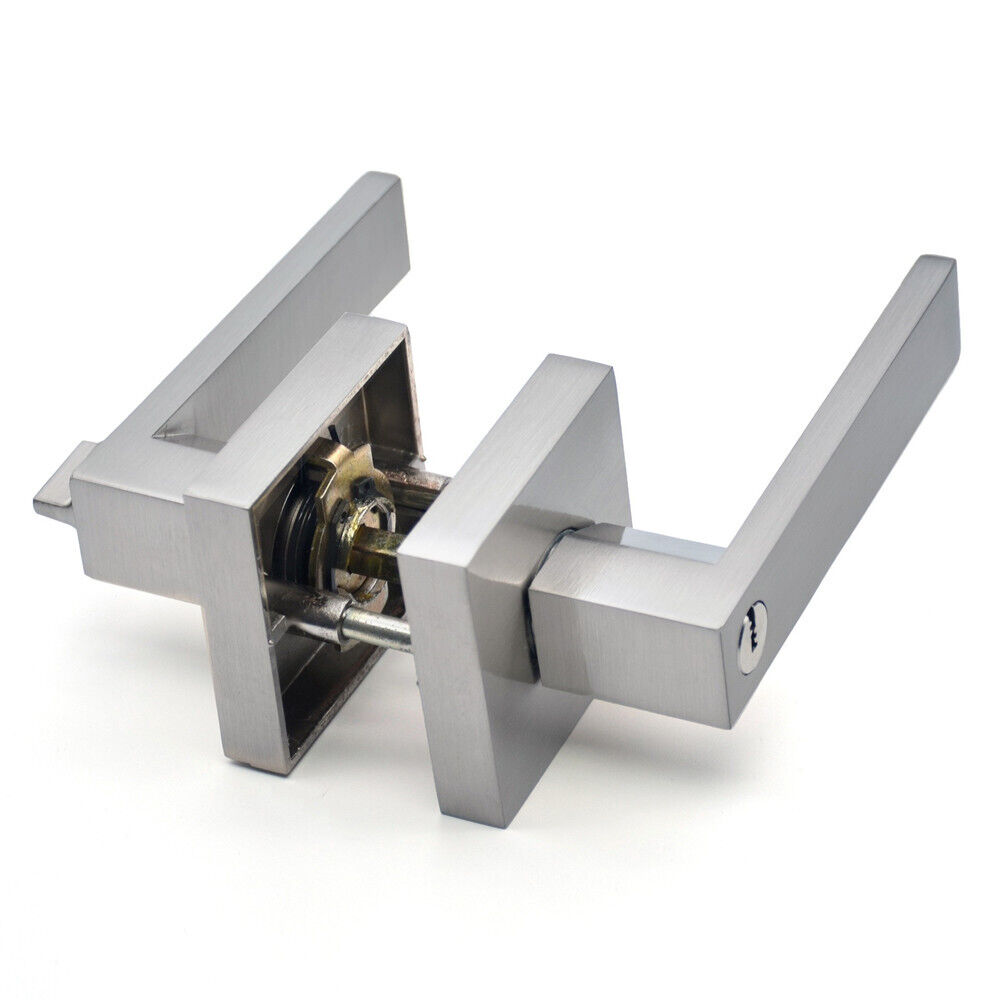 Probrico Square Satin Nickel Bedroom and Bathroom Privacy Door Levers Lockset Keyless Door Locks Handles Pack of 10