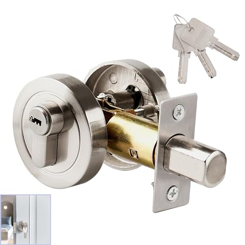 Single Cylinder Deadbolt, Round Deadbolt Lock, Zinc Alloy Door Locks with Keys, Invisible Modern Door Locks for 35-50mm Front Door, Entrance Door, Passage Door, Bedroom Door (Silver)