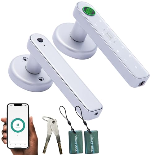 5 in 1 Smart Fingerprint Door Lock, Automatic Smart Door Handle with APP Control/Fingerprint/IC Cards/Password/Backup Keys, Electronic Digital Locks Suit for Bedroom, Office, Apartment, Black