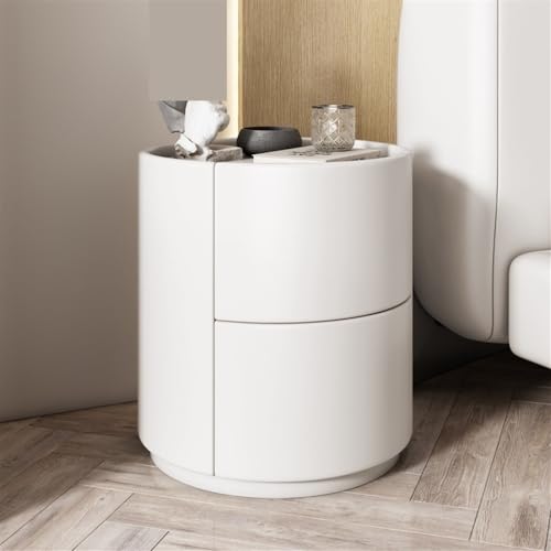 TYBKLHA Round Solid Wood Bedroom Nightstand, 2 Drawers, White