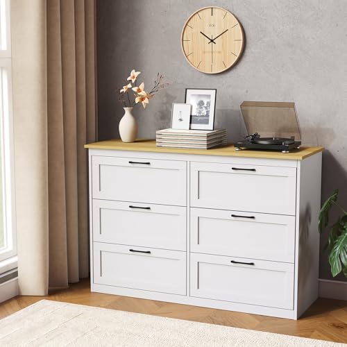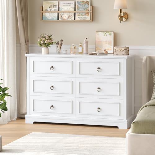yoakaiax Chest of Drawers Bedroom Furniture White Dresser, Bedroom Dressers, Tall Dresser with 6 Wood Drawers, Large Wood Dressers for Bedrooms Closet, White
