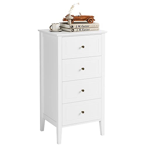 Chest of Drawers Bedroom, White Chest of Drawers, 4 Drawers Dresser, Wooden Freestanding Storage Cabinet, Floor Standing Tall Narrow Storage Cupboard Organiser Unit for Bedroom, Living Room, Hallway