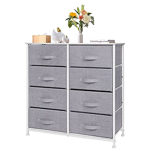 Somdot Tall Chest of Drawers for Bedroom with 8 Drawers, Wide Storage Organiser Fabric Dresser for Closet Nursery Bedside Living Room Laundry Entryway Hallway, Ash Grey