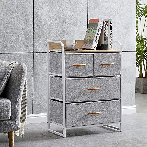 BOJU Bedroom Chest of Drawers for Clothes Living Room Unit Storage Cabinet with 4 Drawers for Hallway Kid Room Organizer Cabinet with Metal Frame Dark Grey Non-Woven Fabric Drawers
