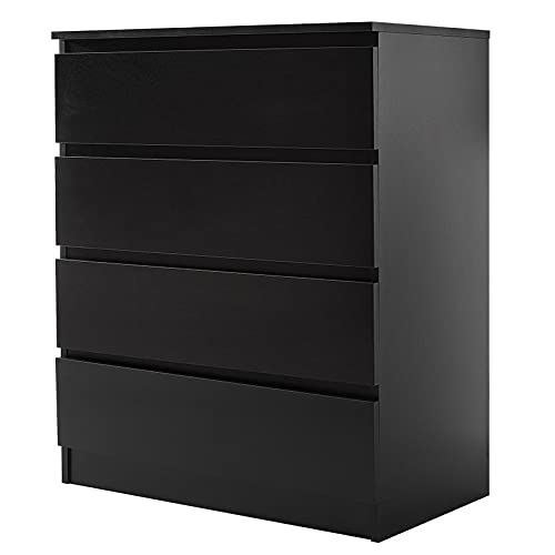 Panana 3/4/5 Bedroom Chest of Drawers with Metal Handles and Runners Wooden Bedside Storage Cabinet for Living Room Hallway Choice of 3 Sizes (Black, 4 Drawer Chest)