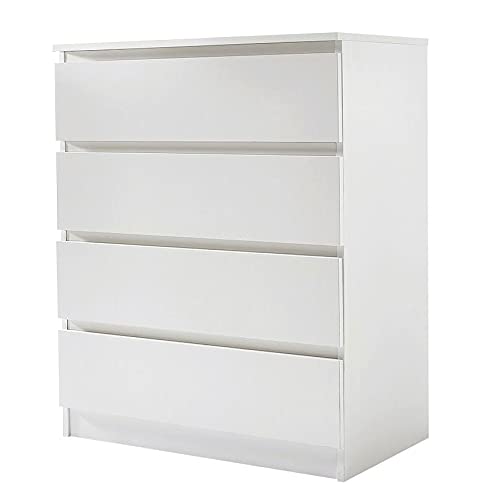 Panana 3/4/5 Bedroom Chest of Drawers with Metal Handles and Runners Wooden Bedside Storage Cabinet for Living Room Hallway (White, 4 Drawer Chest)