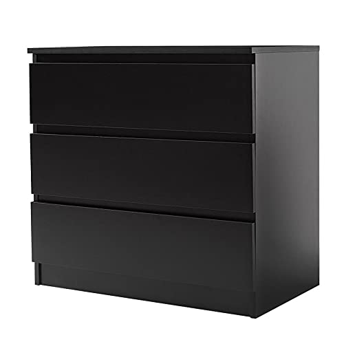 Panana 3/4/5 Bedroom Chest of Drawers with Metal Handles and Runners Wooden Bedside Storage Cabinet for Living Room Hallway Choice of 3 Sizes (Black, 3 Drawer Chest)