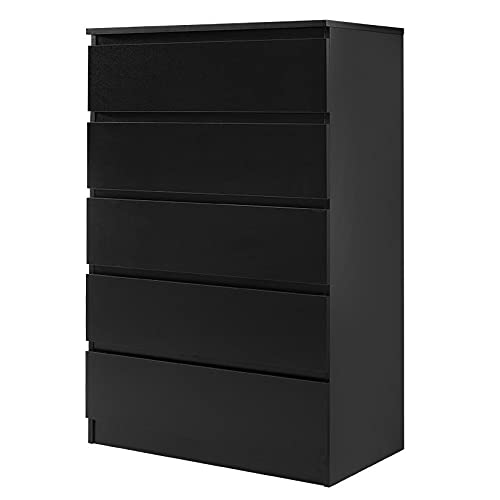 Panana 3/4/5 Bedroom Chest of Drawers with Metal Handles and Runners Wooden Bedside Storage Cabinet for Living Room Hallway Choice of 3 Sizes (Black, 5 Drawer Chest)