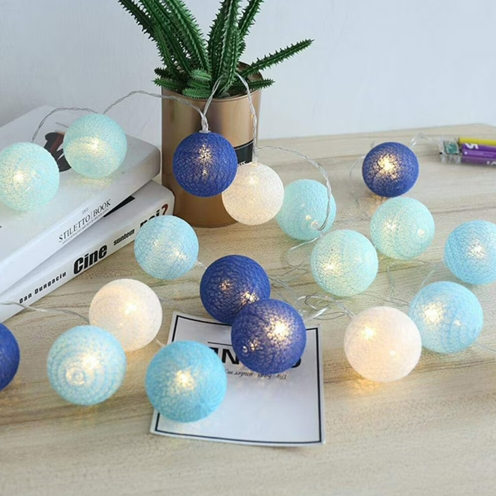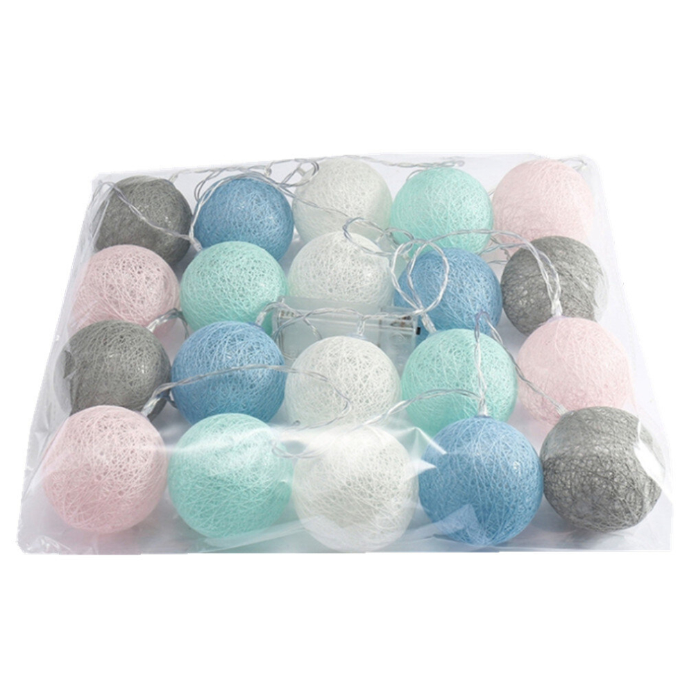 3M 20 Leds Cotton Ball Light String Holiday Wedding Christmas Party Bedroom Fairy Lights Outdoor Led Light Garland Decoration (Macaron)
