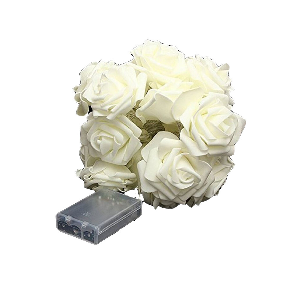 Dreamlike Party Girl's Bedroom Decor, Fairy String Lights White Rose Flower, Battery Operated Design for Indoor Use, Romantic Festival Feast Fairy Lig