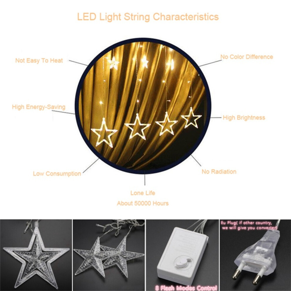 Star Curtain Lights for Bedroom, LED Fairy Twinkle Lights with 12 Star Drops 9ft Long, 8 Lighting Modes with Remote Control Connectable Window Lights