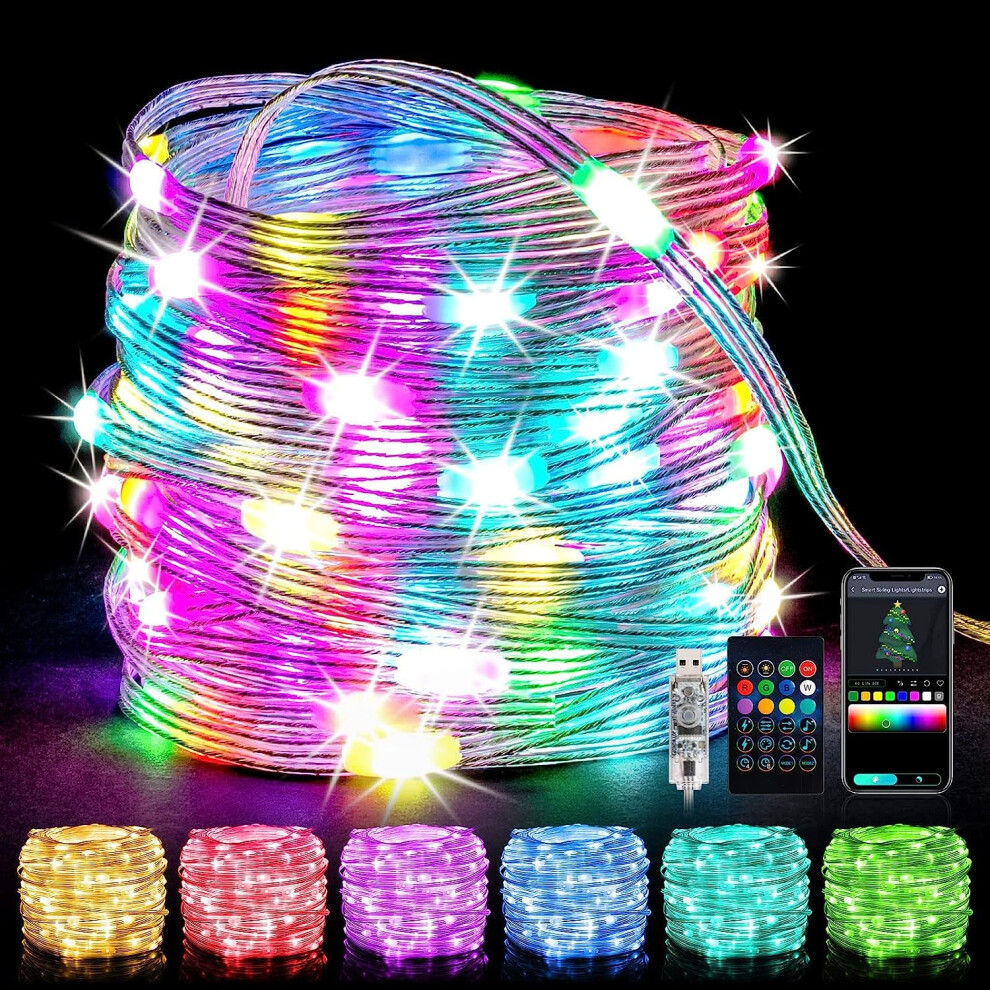 Oreunik Smart App Control Lights,33FT 100LED RGB Fairy Lights for Bedroom,DIY Color&Music Sync String Lights for Bedroom Hanging Fairy Lights,Party,W