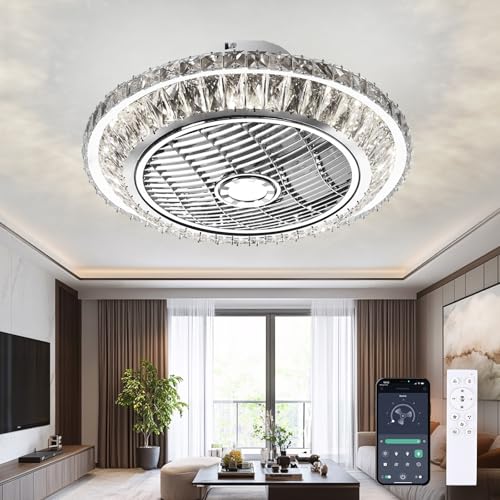 HTRDFWD Modern Luxury Crystal Ceiling Fan Lights, Living Room Bedroom Ceiling Fan Lights, led Lights Ceiling Fan Indoor Lighting