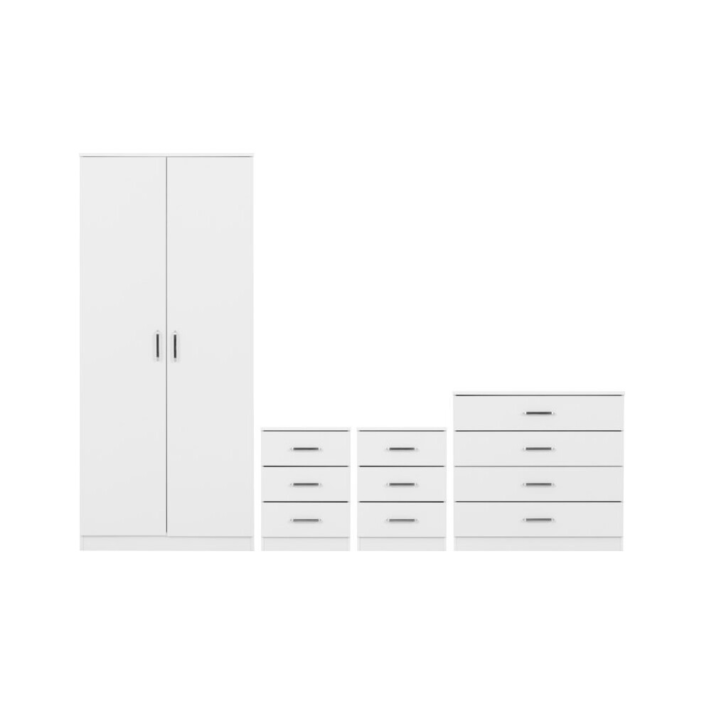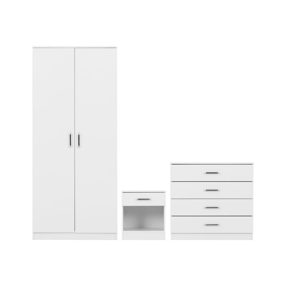 (3 Door Set White) Modern Bedroom Furniture Wardrobes, Bedside, Chest
