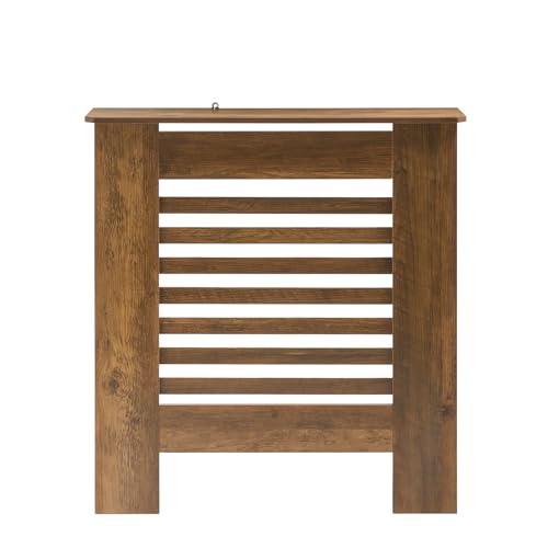 OHS Small Radiator Cover, Stylish Slatted Design MDF Wood Frame Top Shelf Radiator Cover for Living Room Bedroom Hallway Decorative Heater Cover, Dark Wood - 78 x 82 x 19cm