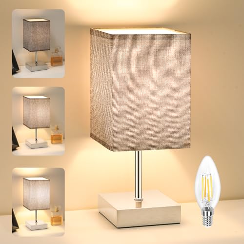 Totofac Touch Control Table Lamp, 3-Way Dimmable Bedside Lamps Nightstand Lamps with Flaxen Fabric Shade for Bedroom Living Room,LED Bulb Included (Grey-1Pcs)