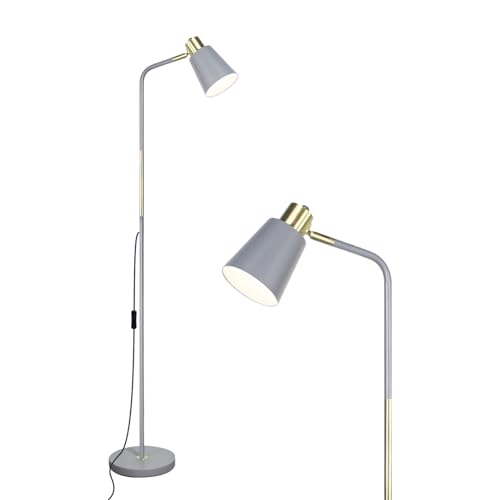 Floor Lamp, Industrial Floor Lamps Corner Lamp Rustic Farmhouse Standing Lamp, Adjustable Metal Heads Indoor Task Lighting Reading Floor Lamps for Living Room, Bedroom, E27 Socket (Grey)