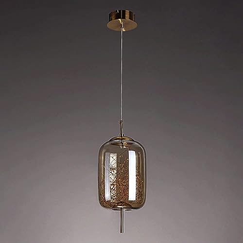 LYGXWJFC Nordic Style Metal Glass Chandelier,G9 Screw Single Head Pendant Light,Smoke Gray Glass Hanging Lampshade,Bedroom Restaurant Ceiling Decoration Lighting Fixtures