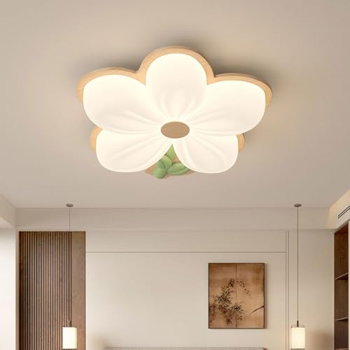 Ceiling Light Fixture Led Wooden Ceiling Light Flower Sdimmable Living Room Lamp Modern Ceiling Lamp Bedroom Ceiling Lighting Including Remote Control Acrylic Lampshade/Stepless Dimming/4Head 36W