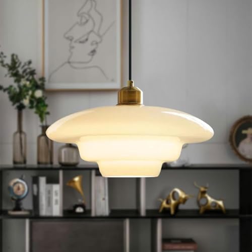 LXYAYY Creative Flying Saucer Chandeliers Acrylic Lampshade Ceiling Pendant Light, Nordic Retro Art Hanging Lighting for Dining Room Bedroom Hallway Kitchen(white)
